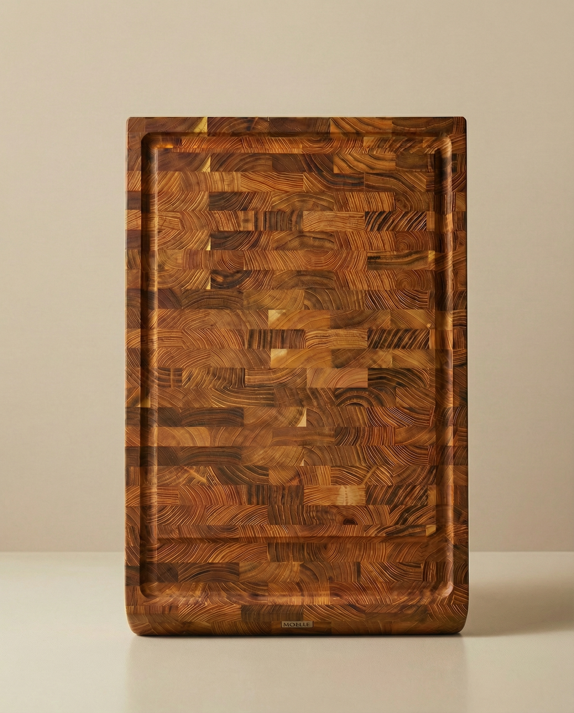 Made from sustainably sourced teak wood with natural antibacterial and antifungal properties, this cutting board is a beautiful and functional tool that will last for many years.