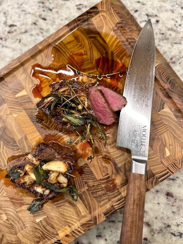 A nice, freshly baked bread deserves to be cut with a knife that effortlessly slides through it. Our bread knife is precisely what you need. Crafted with an impressive 67 layers of steel with a VG10 steel core, this knife offers exceptional precision and quality.