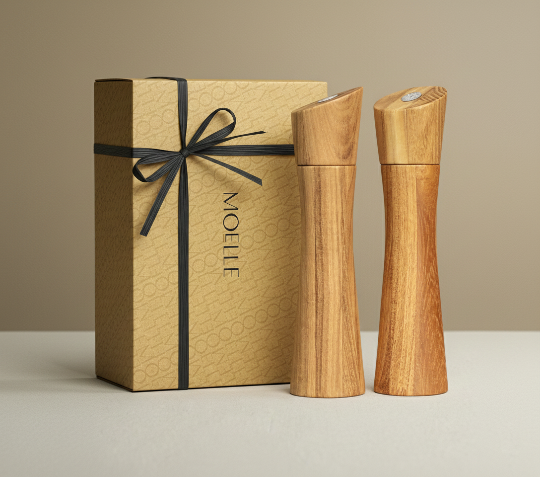 The MOELLE salt and pepper grinder set is designed for everyday use, bringing a quiet sense of Nordic simplicity to the modern kitchen.